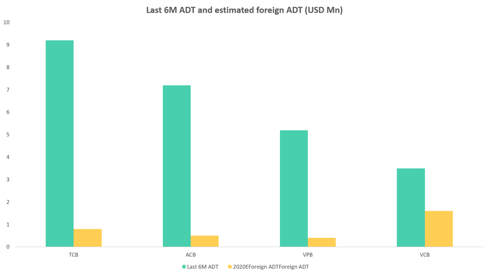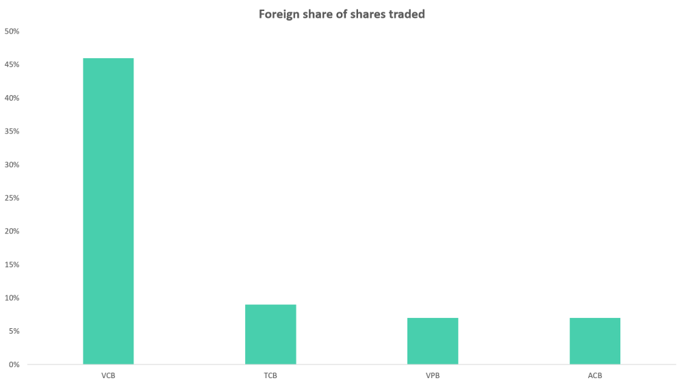 Foreign share of trades are much lower at TCB, VPB, ACB