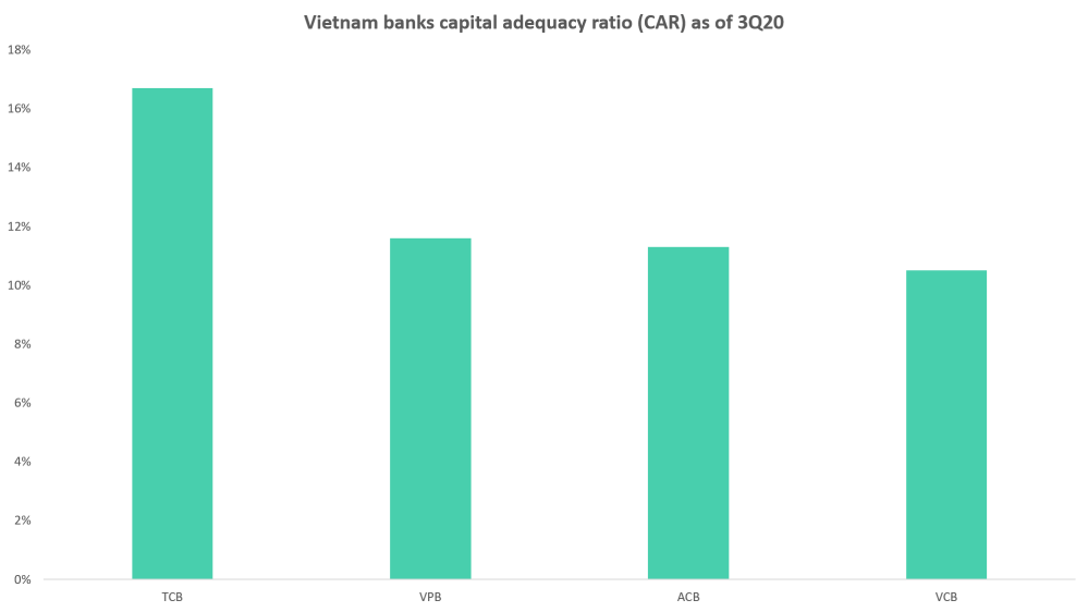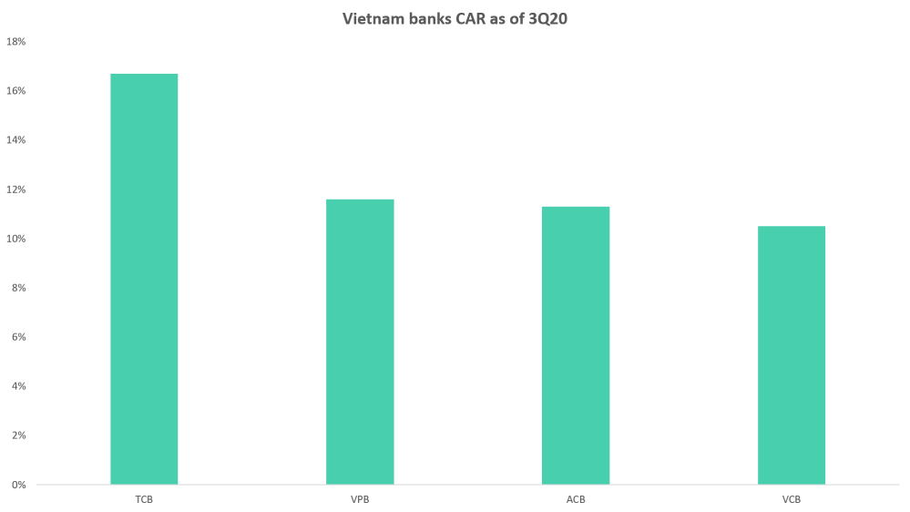 TCB: highest capital adequacy ratio (CAR) in coverage
